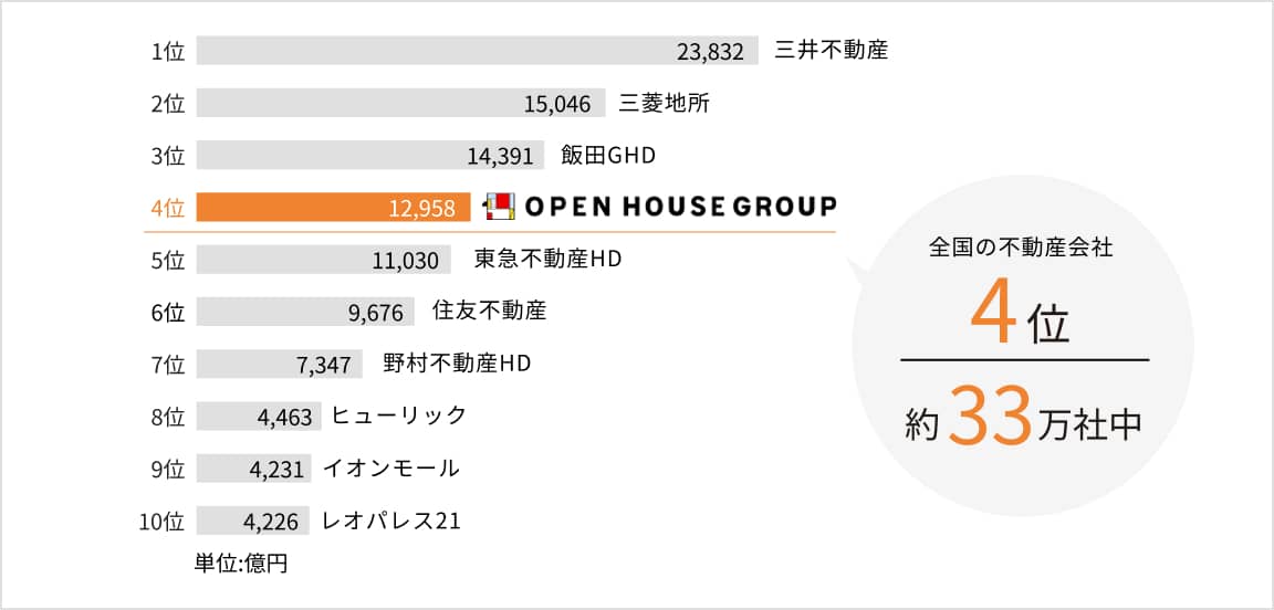 株式会社オープンハウスグループは、「2021年・2022年・2023年・2024年 全国分譲マンション 売主グループ別供給戸数ランキング」において4年連続第1位(※)を獲得。