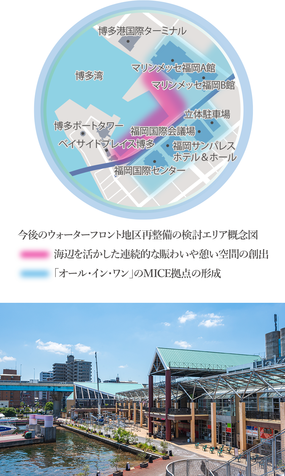 国際会議場や商業施設、エンターテインメントの舞台が集結し、水辺の景観と都市機能が融合する「ウォーターフロントネクスト」。世界に開かれた街づくりが進み、暮らしに新たな価値と可能性を広げます。