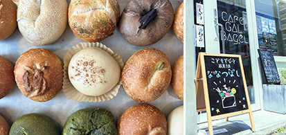 ・ 「博多呉服」から徒歩8分(約580m)素材にこだわった焼きたてベーグルやパニーニを、落ち着いた空間で楽しめます。