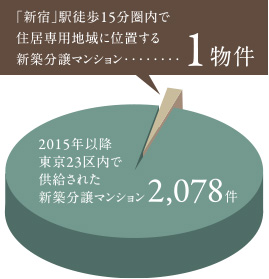 本プロジェクトは、快適な利便を享受する新宿駅徒歩圏というポジションに加え、穏やかな住宅街を形成する第二種中高層住居専用地域に誕生。同じ条件に立地する新築分譲マンションは、過去10年間本物件を除き他に1物件しか存在しません。