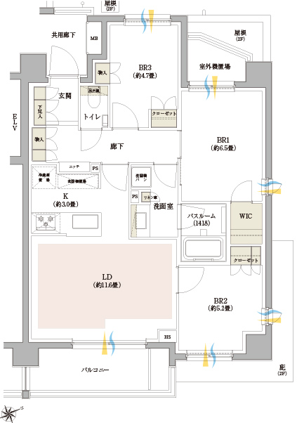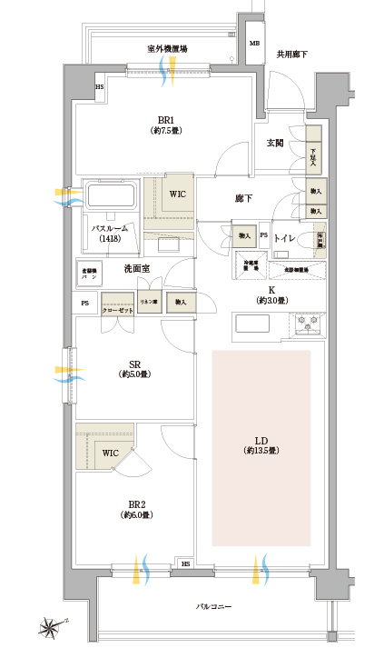 - 方位記号には若干誤差があります。正確な方位については設計図書でご確認ください。