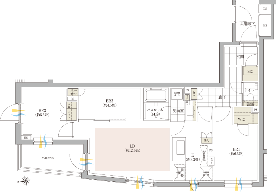 - 方位記号には若干誤差があります。正確な方位については設計図書でご確認ください。