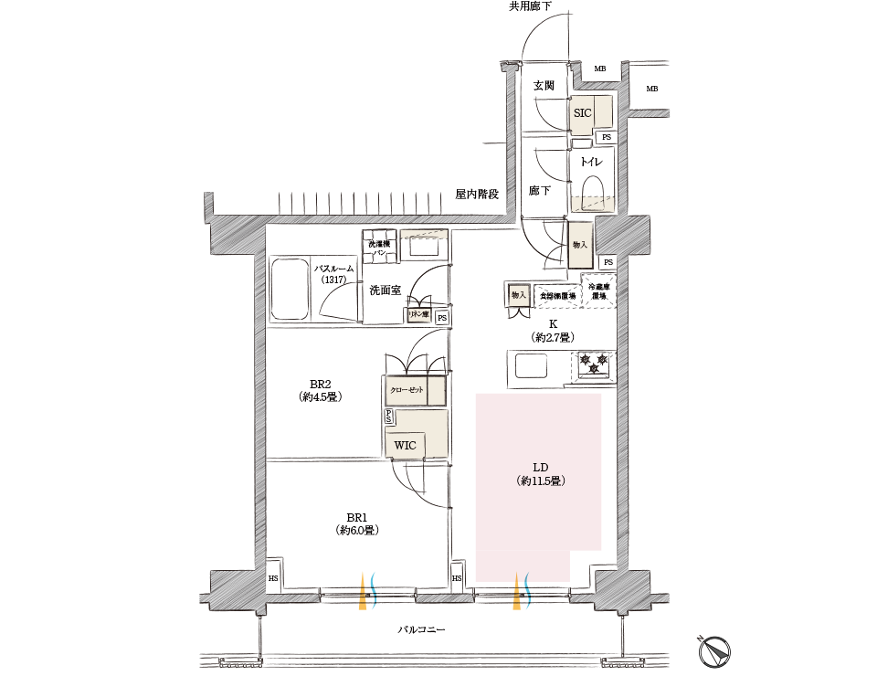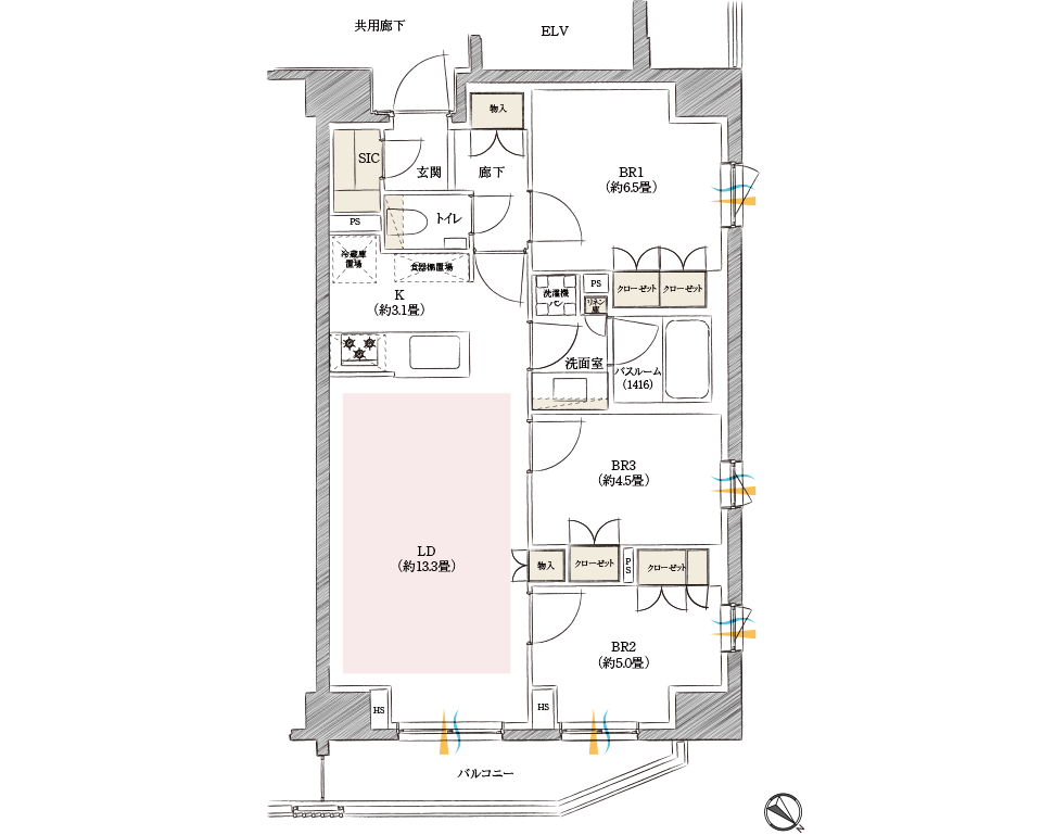 ※方位記号には若干誤差があります。正確な方位については設計図書でご確認ください。