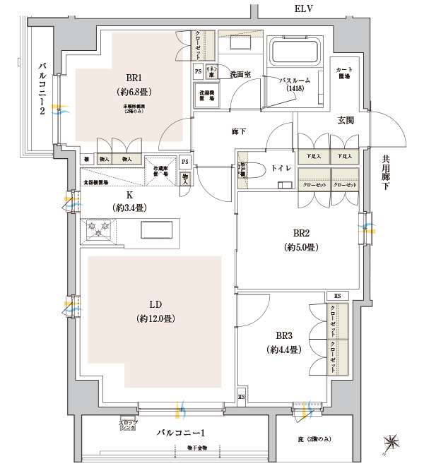 - 方位記号には若干誤差があります。正確な方位については設計図書でご確認ください。