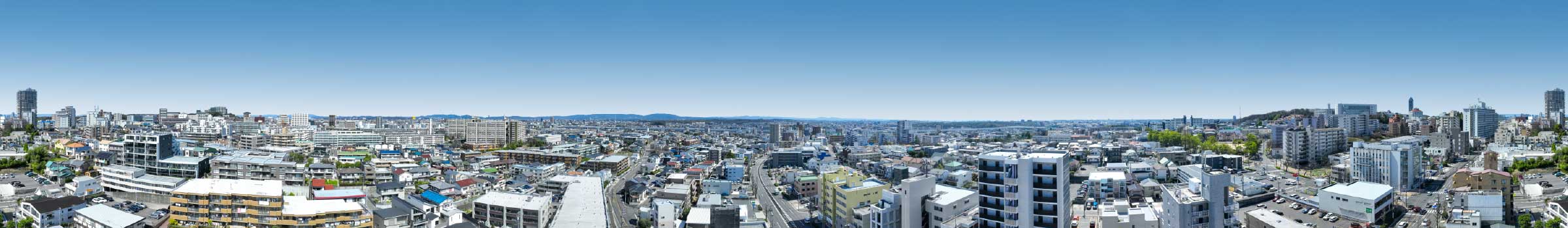 現地15階相当から北西~北東方向のパノラマ眺望写真(2024年3月撮影)