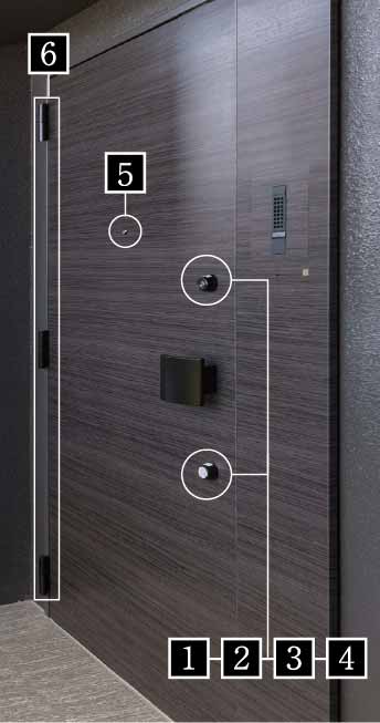 - 鎌状の錠がドアに食い込み、バールなどによる不正解錠を困難にしています。