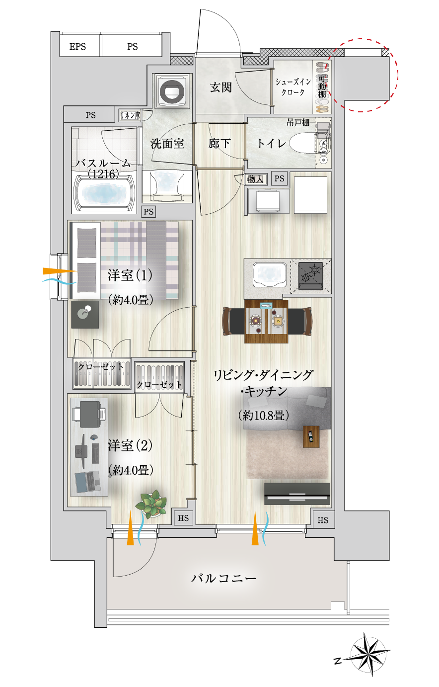 HS:住宅内パイプスペース(畳数に含まれる配管スペース)