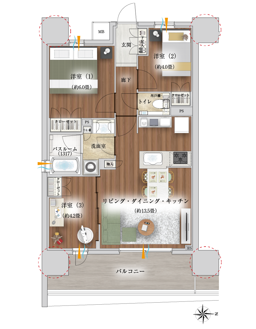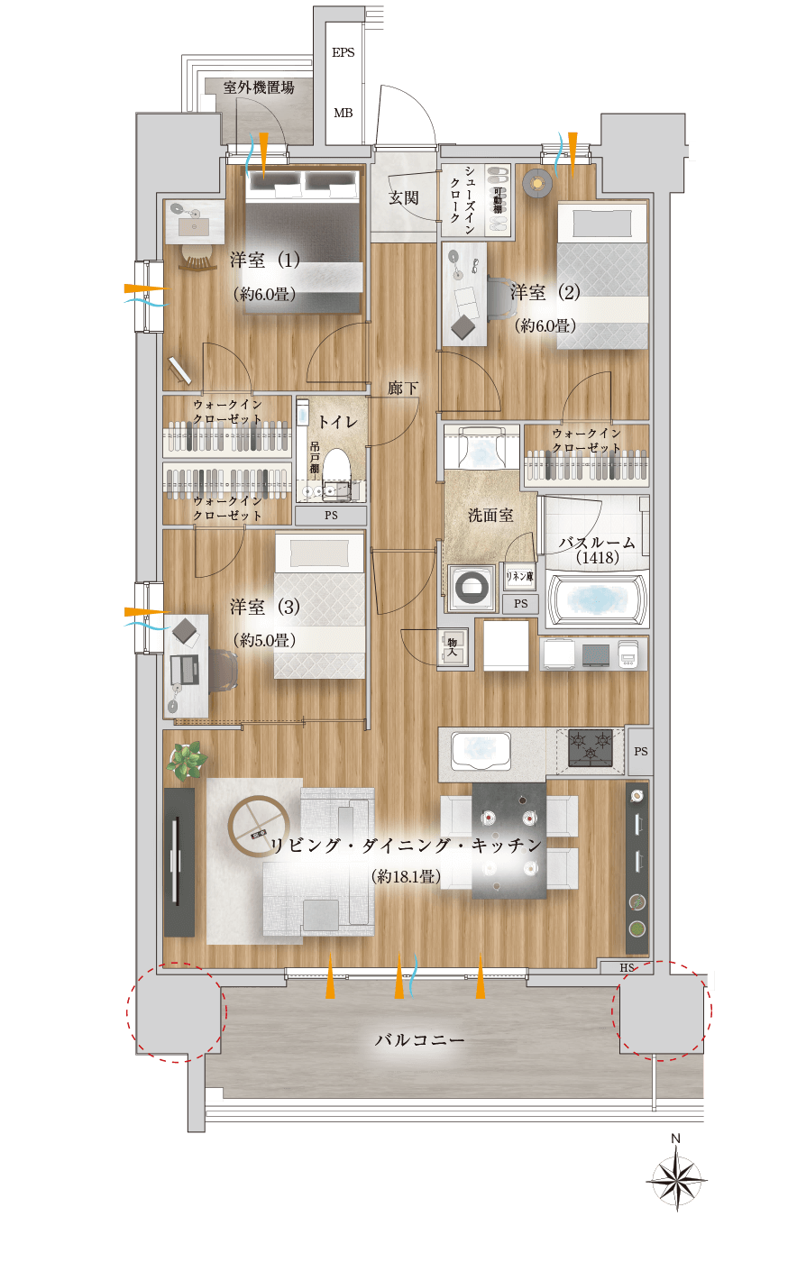 HS:住宅内パイプスペース(畳数に含まれる配管スペース)