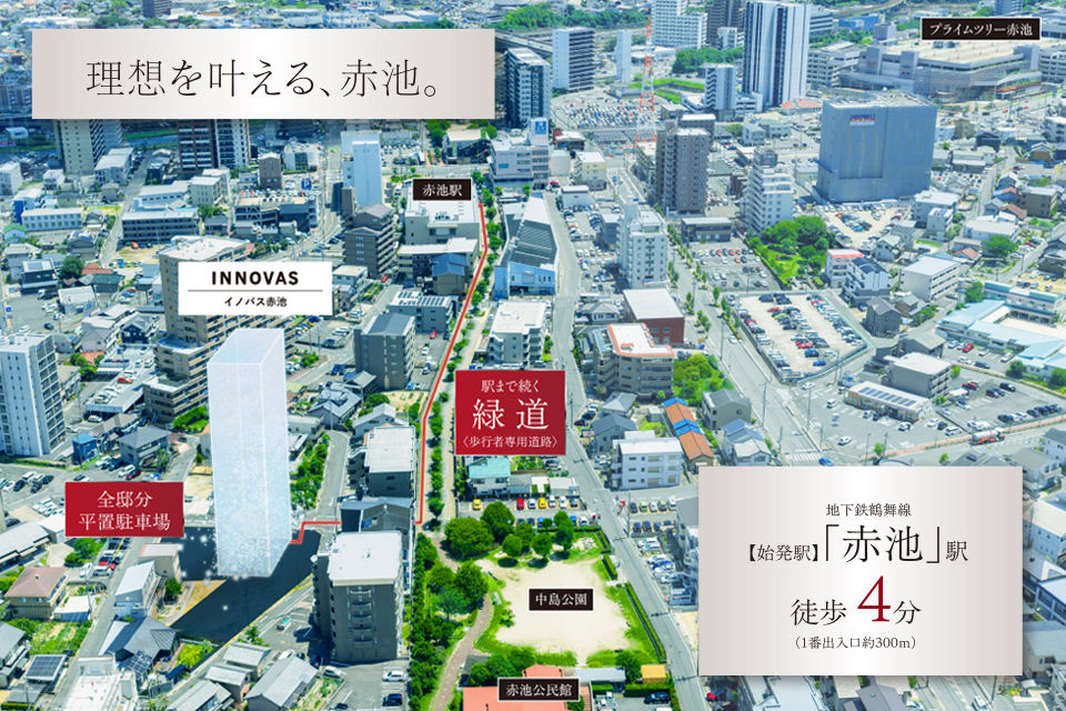 「赤池」駅徒歩4分×平置駐車場設置率100%×全邸南向き!2LDK~4LDKプラン。